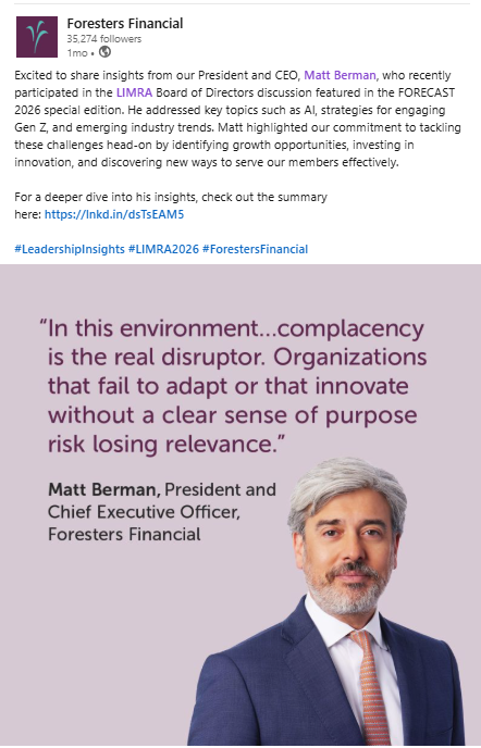 Foresters Financial™ is not your typical financial services provider. Those who join our purpose-driven organization enjoy a culture of collaboration, creativity, and are challenged to make a difference every day. Follow us to see how employees and members are giving back in their communities and for other Foresters news.